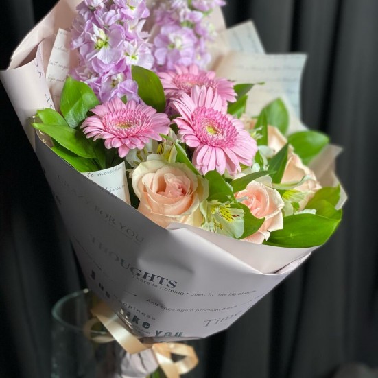 Большущее спасибо, людям, которые могут доставить радость и восхищение! Удачи и процветания вашей фирме.Бесподобный букет,видно работу настоящих профи! За быструю доставку в кратчайшие сроки.