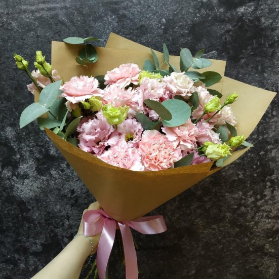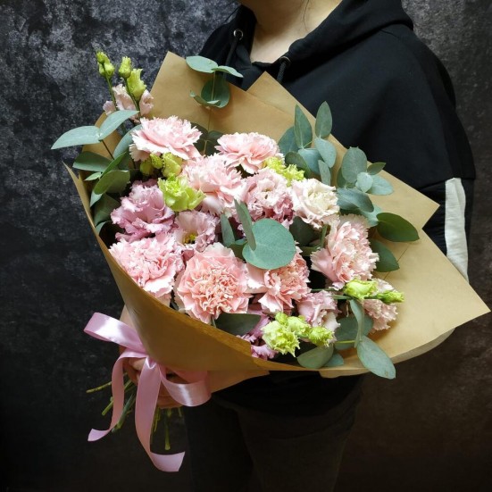 Букет из кустовых гвоздик и эустомы в Тутаеве