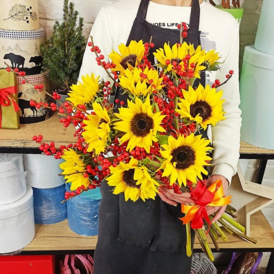 Букет «Подсолнухов и рябины» в Тутаеве