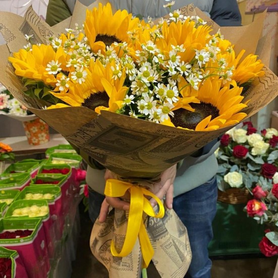 Букет из ромашек и подсолнухов