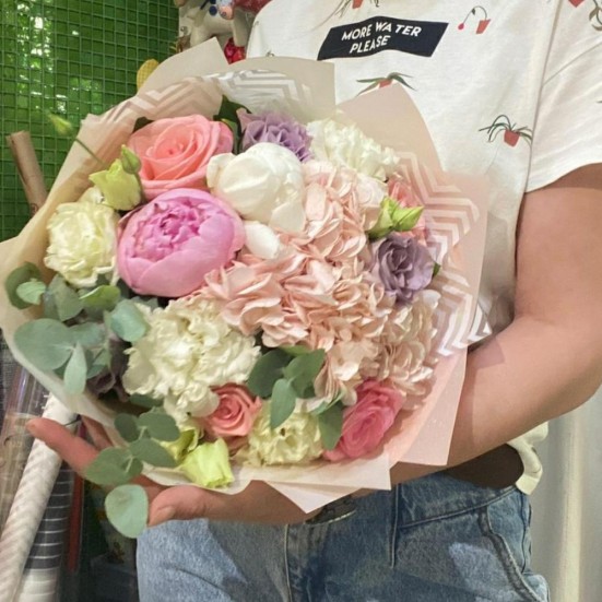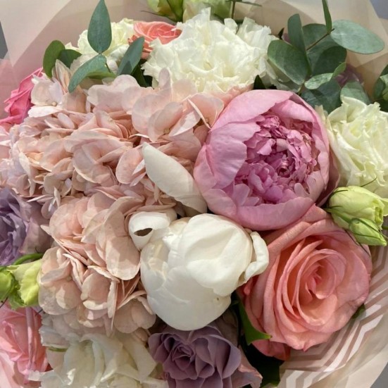 Букет «Розы, пионы, гортензия»