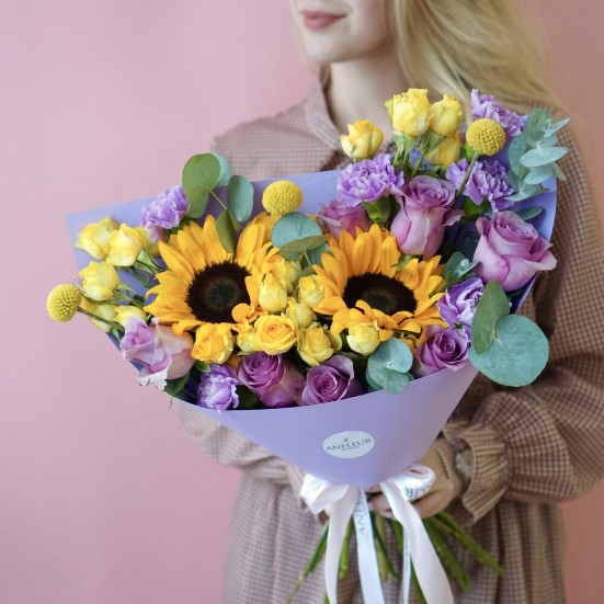 Букет «Стильный с подсолнухами»
