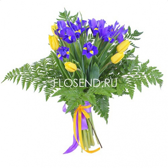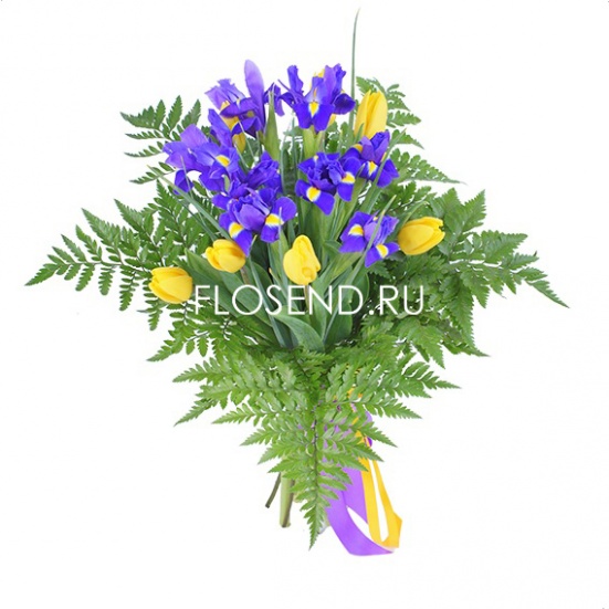 Букет желтые тюльпаны и ирисы в Тутаеве