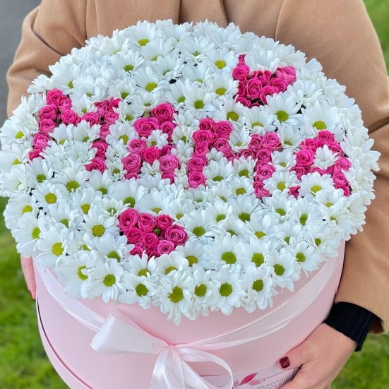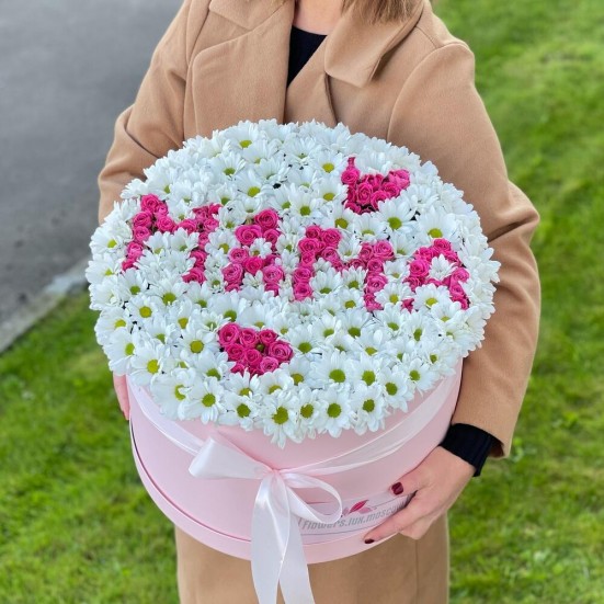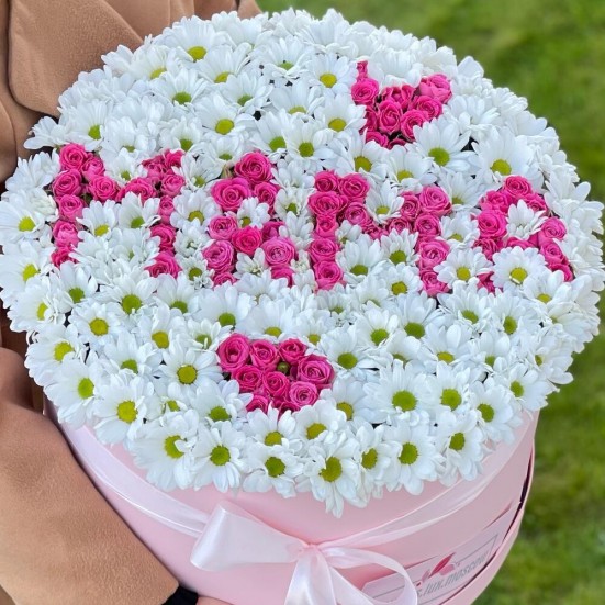 Хризантема ромашковая и роза в коробке Маме