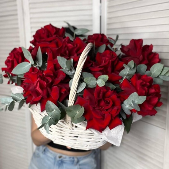 Корзина из 9 красных французских роз